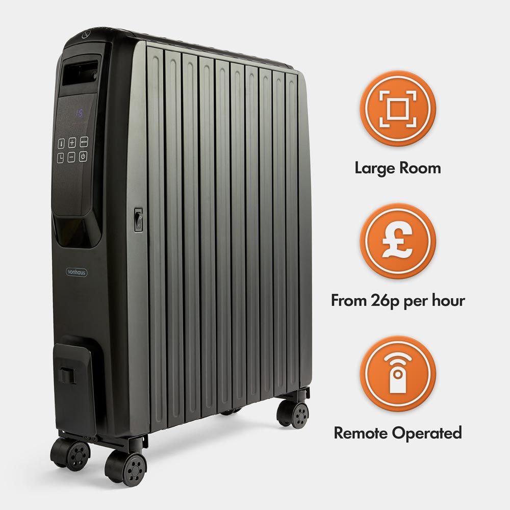 The Vonhaus 10 fin 2000w radiator is ideal for medium to large-sized rooms, such as bedrooms, home offices, or cosy living areas, providing quick and efficient warmth.