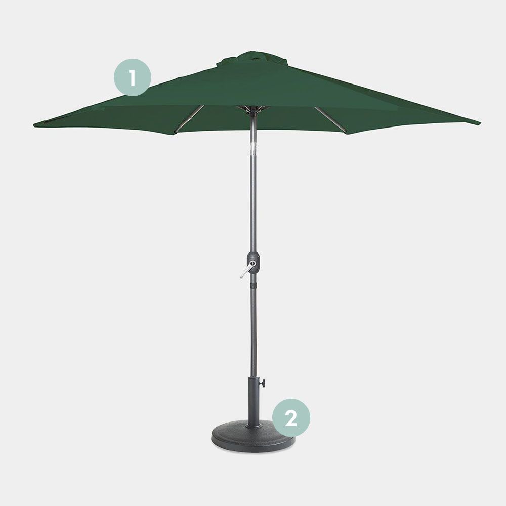 Finished in a deep forest green colourway, our parasol with base will soften the glare of the sun – and look good doing it! Whether you’re bringing your interior colour scheme outside or embracing the natural leafy hues of the outdoors, the dark green canopy is sure to attract compliments.