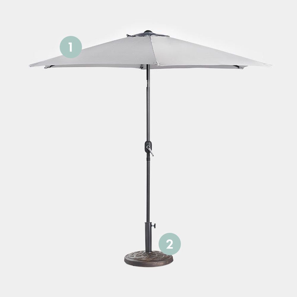 No need to scour the shops for a separate base – this parasol set has you covered.