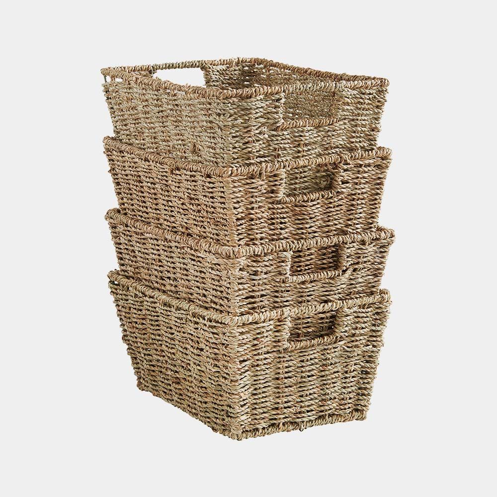 Store belongings in an orderly fashion with the VonHaus Set of 4 Seagrass Storage Baskets.